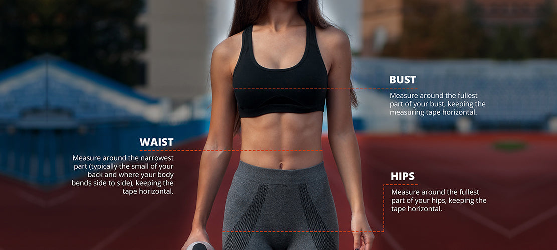 - WAIST: Measure around the narrowest part (typically where your body bends side to side), keeping the tape horizontal.